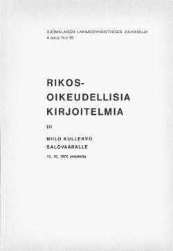 Rikosoikeudellisia kirjoitelmia. 3, Niilo Kullervo Salovaaralle 13.10.1972 omistettu